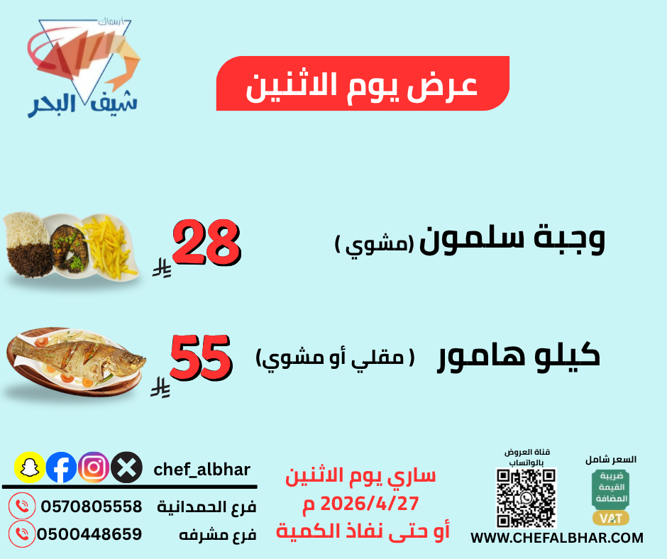 • 1 kg Fried or Grilled Hamour — 54 SAR