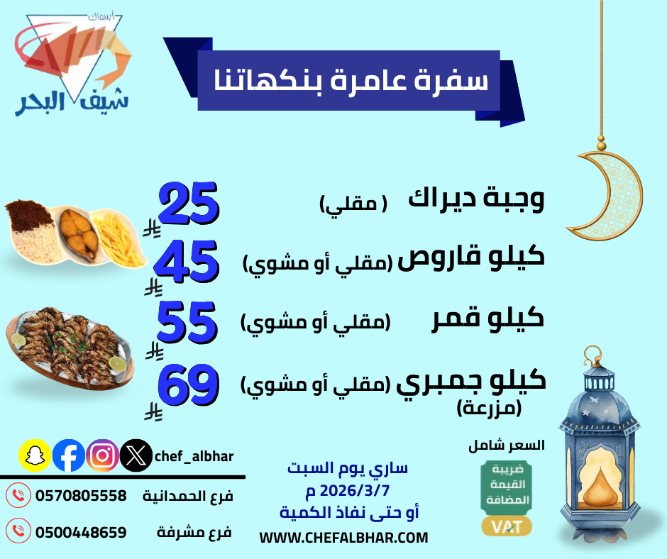 Hammour Fish, Hareed or Qamar + Shrimp + Squid + Sayadiyah / White Rice For Five People