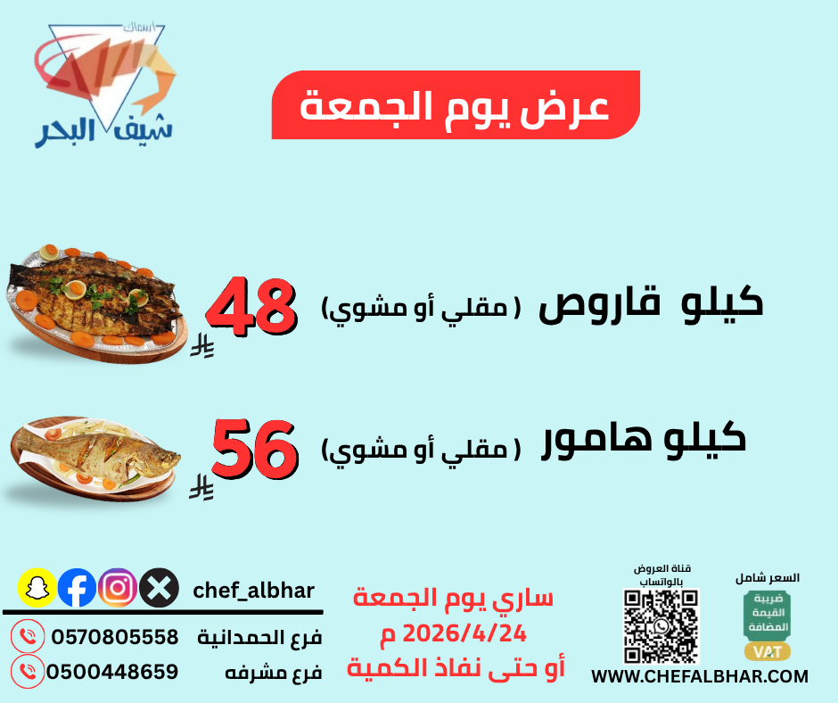 - 1 kg Fried or Grilled Hamour — 52 SAR